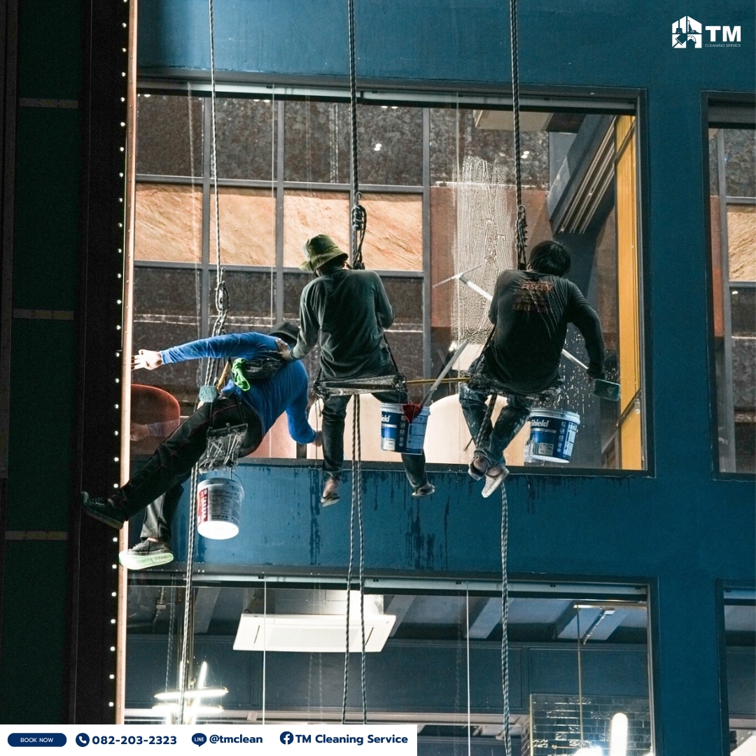 ทำความสะอาดกระจกที่มีความสูง ทั้งภายในและภายนอก